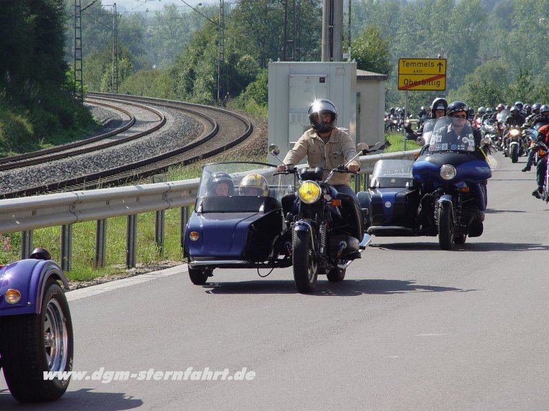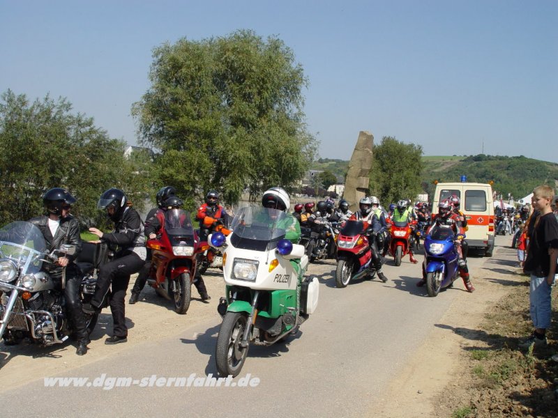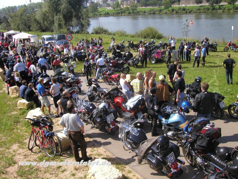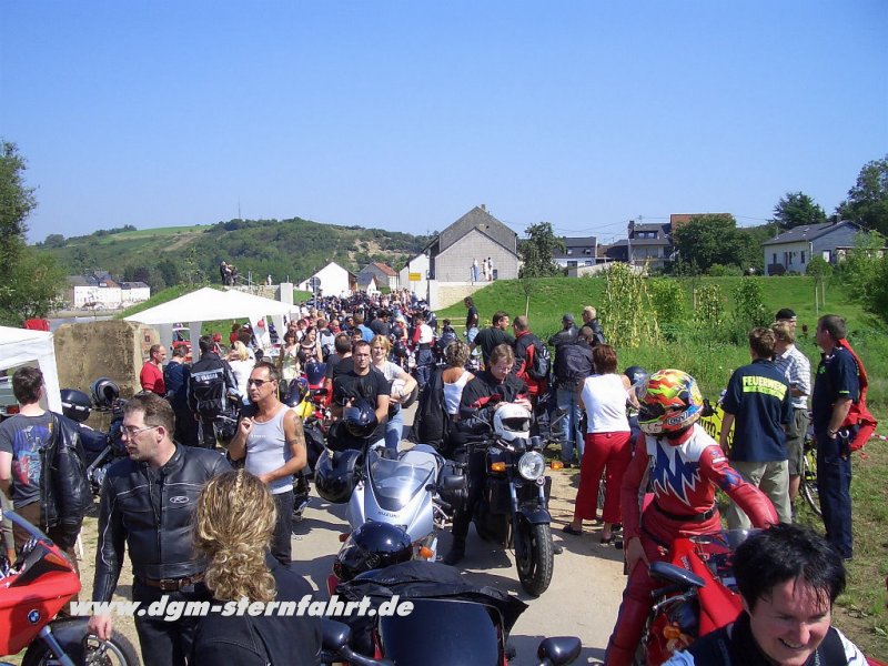Nachdem wir eben Oberbillig wieder auf Vordermann gebracht haben, will Ich euch jetzt von der 1.DGM-Sternfahrt 2004 berichten. Nachdem an den Vortagen die Aufbauten der Stände und Zelte schon unter strahlendem Sonnenschein erledigt wurden und am Vorabend die ersten Ausstellungsmotorräder angeliefert wurden, wussten alle Helfer+Organisatoren noch nicht, was Sie am 04.09 erwartete. Die Spannnung stieg und stieg und als dann am 04.09. gegen 09.00 Uhr die ersten Motorräder einrollten, zeichnete sich erst gegen 11.00 Uhr ab, daß alle Erwartungen übertroffen werden sollten.