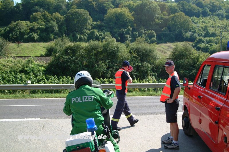 Nachdem die Start-Formation aktzeptabel war, startete der Konvoi mit ca.500 Motorrädern. Die Zeit hielt für einen Moment den Atem an als 40000 PS die Erde erbeben liessen. Unter dem Jubel von hunderten Zuschauern startete der Konvoi mit Motorrädern, Gespannen, Trikes und Quads zur geplanten Tour. Jeder der aktiven und passiven (die gab’s auch!) Teilnehmer trug zum alleinigen Start-Spenden Ergebnis von 2660.-€ bei, die durch 5.-€ Startgeld zustande kamen. Während der schönen und vor allem unfallfreien Tour, danke nochmals an alle Teilnehmer für Ihr dizipliniertes Verhalten, zeigte sich das Wetter von der allerbesten Seite und schenkte uns bei 28C Sonne ein. Den 2. Kradmelder der Polizei und den 5 Helfern des CBR-1000.de Forums gilt unser besondere Dank. Auch nach der leider “trockenen” Rast nach 100km (Ich gelobe Besserung) startete der Konvoi, der sich derweil auf ca. 700 Motorräder vergrössert hatte ohne Komplikationen wieder. Als wir nach 140 km wieder sicher in Oberbillig “einliefen” glaubte ich, daß die Getränke und Essensstände diesem Ansturm nicht standhalten würden. Aber die eingeteilten Kräfte von den Ortsvereinen der Gem. Oberbillig und das Team des “Haus der Fischerei” meisterten die Situation souverän. An dieser Stelle nochmals ein riesen Dankeschön an die Ortsvereine von Oberbillig ohne deren Hilfe wir ein grosses Problem gehabt hätten. Zu diesem Zeitpunkt spielte sich schon die Rockband No1 in Rhld.-Pfalz ein. Die “Leiendecker-Bloas” sorgte für einen neuerlichen Ansturm der Besucher in Oberbillig. Von allen Seiten strömten die Gäste ein und vereinten sich mit der immernoch grossen Anzahl von Bikern/Bikerinnen zu einer super gelaunten Partygesellschaft, Gemeinschaftlich vernichtete man z.B. 200 Kisten Bier à 20 Flaschen. Die “Leiendecker-Bloas” sorgte für eine quante (=ge…) Stimmung und Fröhlichkeit die viele zum Mitsingen (sofern man des trierischen Dialektes mächtig war) und Mitklatschen und Tanzen veranlasste. Die “Bloas” spielte von 19.00 Unr – 22.00 Uhr und durfte erst nach Zugaben die Bühne verlassen! Hier nochmals ein Riesen Dankeschön an die “Leiendecker-Bloas”. Sie spielten für uns, ohne einen Cent dafür zu verlangen.