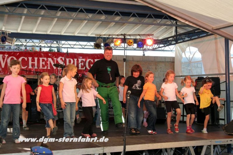 Nach der Tour konnte man sich mit Kaffee und Kuchen stärken, den die Bürger von Oberbillig spendeten. Ca. 60 Kuchen wurden verspeist. Am Nachmittag sorgte die Kindertanzgruppe Tanzalarm, unter der Leitung von Steffi+Steffi, für den ersten musikalischen Höhepunkt. Unser Ansprechpartner von der Motorradstaffel Trier, POK Olaf Pelz, wurde unter großem Beifall des Publikums und seiner Kollegen von den Kindern auf die Bühne gebeten, wo er mit den Kindern drei Tänze auf der Bühne absolvierte und fast das Zelt des DRK, wegen Atemlosigkeit aufsuchten musste.